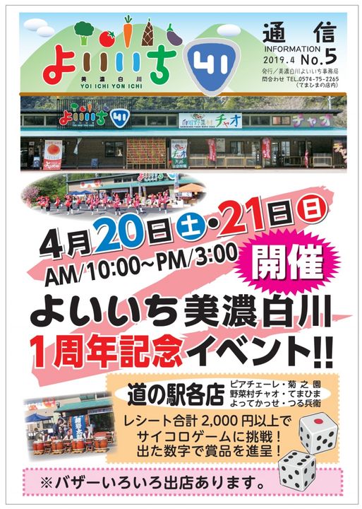 道の駅美濃白川ピアチェーレの第二駐車場に昨年4月にOPENした「よいいち41」はおかげさまで1周年を迎えます。