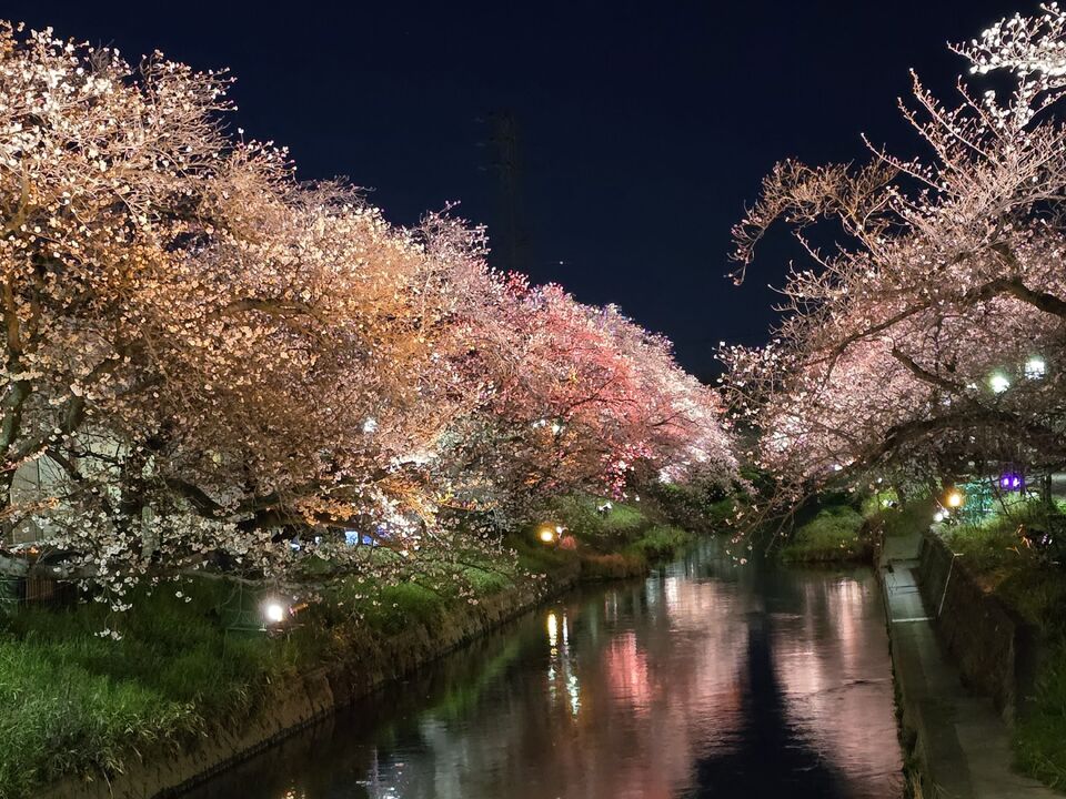 今年は、平成橋(上流)でカラーライトアップされた桜をご覧いただけます。